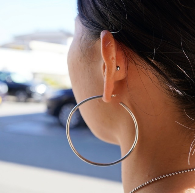 【商品名】 BIGフープピアス(PS125-P) 2.5mmの棒状シルバー素材を使用し、フープピアスを製作しました。 今回は直径60mmと大ぶりサイズで、存在感たっぷりの仕上がりです。 シンプルながらもインパクトがあり、 コーディネートのアクセントとしてお楽しみいただけます。 顔周りの印象を明るく見せてくれるので、 普段使いはもちろん、少し特別な日のおしゃれにもぴったりです。 こちらのピアスは’’片耳(シングル)での販売’’となっております。 ・両耳分をご希望の場合は、2点ご注文いただく形となります。 必要に応じてご案内いたしますので、お気軽にお申し付けくださいませ。 【素材】 silver925(スターリングシルバー) 【サイズ】直径60mm 【配送に関して】 * 送料はお届けする地域によって異なります。ページ上部の「送料を確認する」より、ご確認ください。 * 代金のお支払い確定後、5日以内に発送いたします。 【ラッピング】 masamuneオリジナルのギフトボックスをご希望の方は ”large”からお選び ください。 ご不明点・ご質問等はFAQをご覧いただくか、CONTACTページよりお問い合わせください。