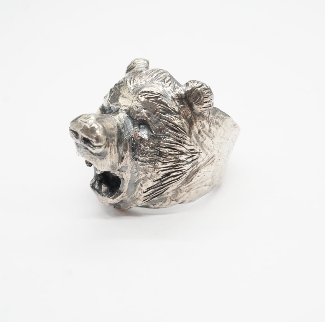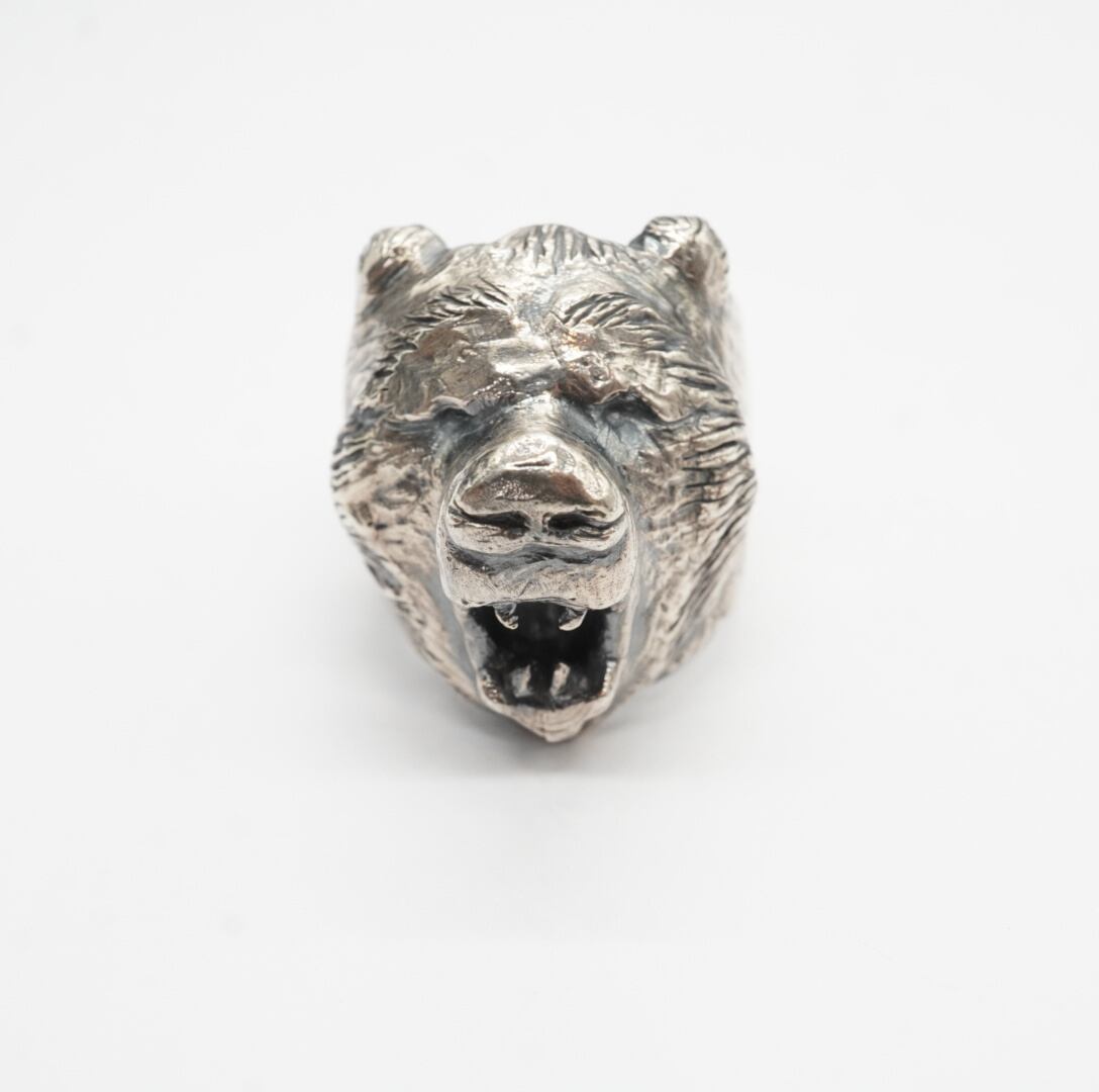 精巧なディテールによって再現された熊の表情は、迫力の中に知性と威厳を感じさせ、身に着ける人の個性を引き立たせます。