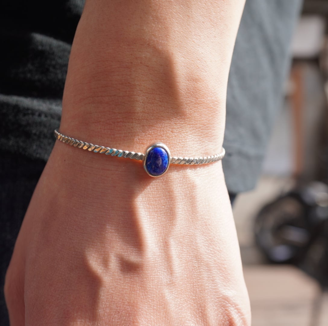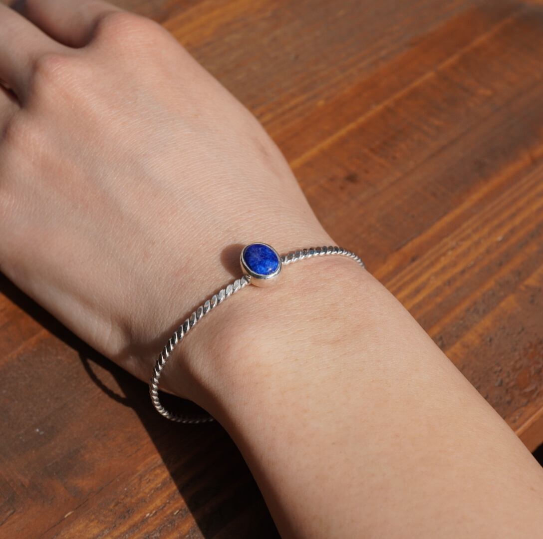 ラピスラズリを覆輪留めしたバングル。