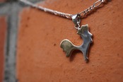 もう一方は真鍮をトサカと羽にあしらい、柔らかく温かみのあるゴールドの色味がアクセントとして光ります。シルバーの清涼感と真鍮の深みが、1つのトップで味わえる贅沢な組み合わせです。