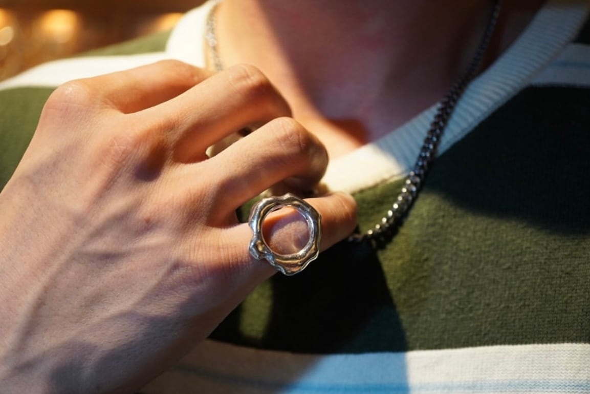 サイズ小さめに製作しておりますが、ボリュームのあるリングで指元のアクセントになる為、ピンキーリングとしても活躍します。