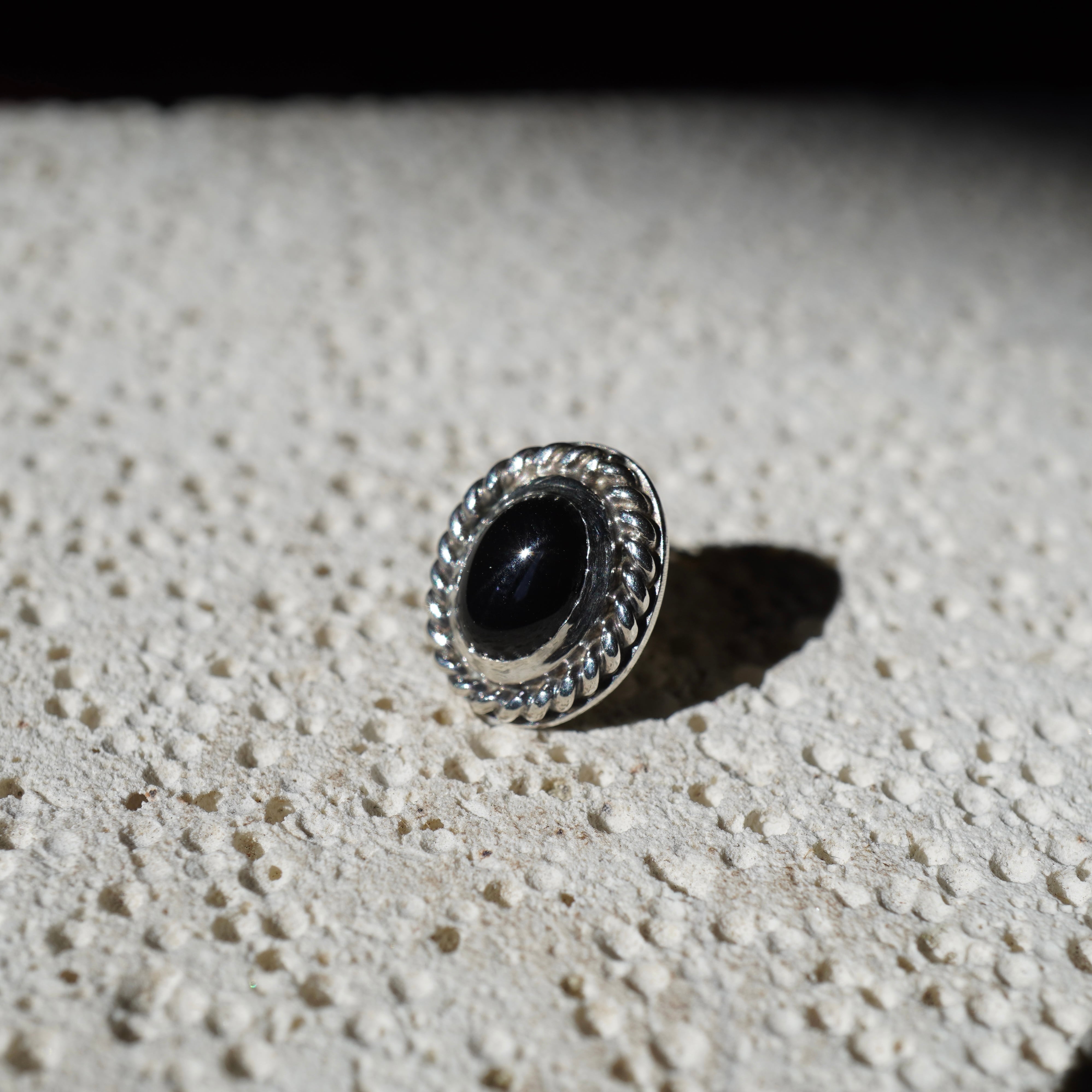 silver925でオニキスをしっかりと固定する「覆輪(ふくりん)」を採用し、