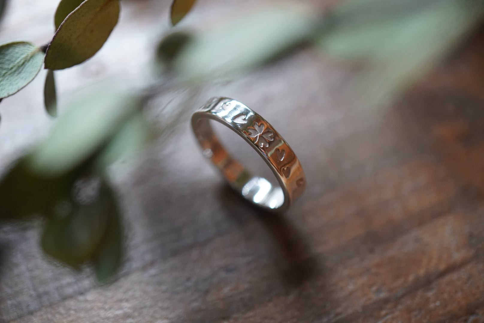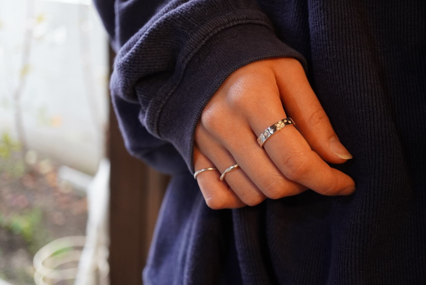 また、ところどころに小さな花びらを散りばめる様に打刻