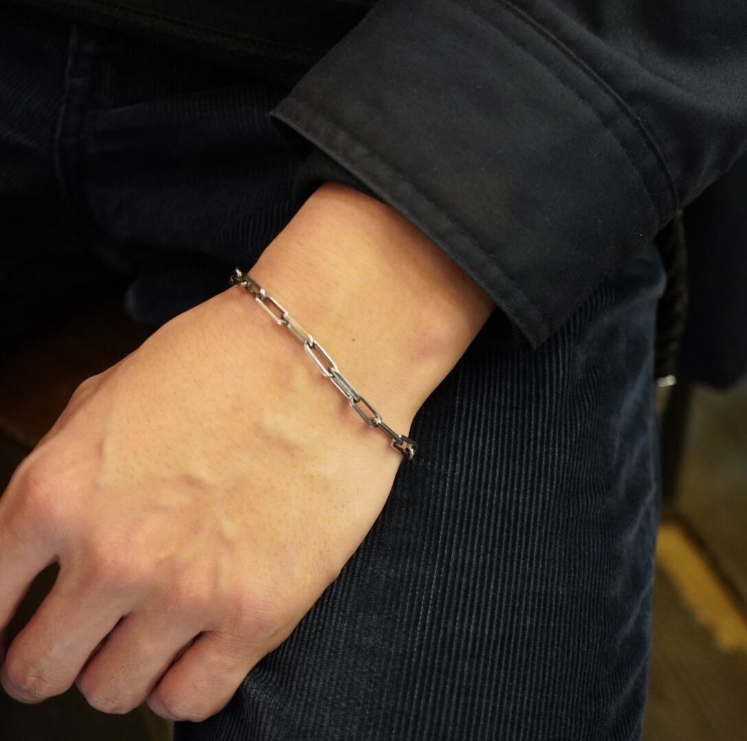 ほどよい存在感と繊細さをあわせ持つ、ロングあずきチェーンのブレスレット。